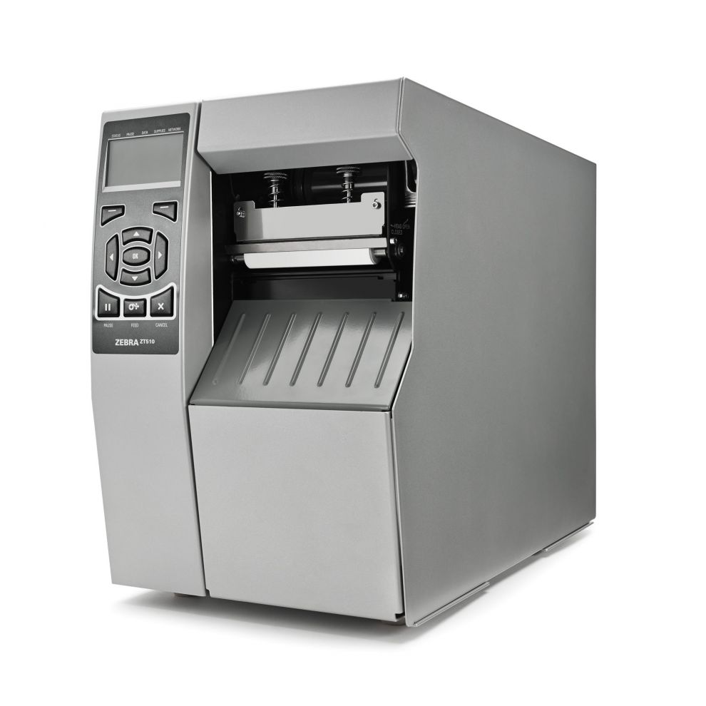 ZT510, 203dpi, Tear, UK and Euro Power Cords, Media Hanger, Thermal Transfer & Direct Thermal print modes, USB 2.0, Serial, Parallel, Gigabit Ethernet, Bluetooth Low Energy, 512MB SDRAM memory (32MB User Available), 2GB Flash memory (256MB User Available), Adjustable Transmissive & Fixed Reflective Sensor